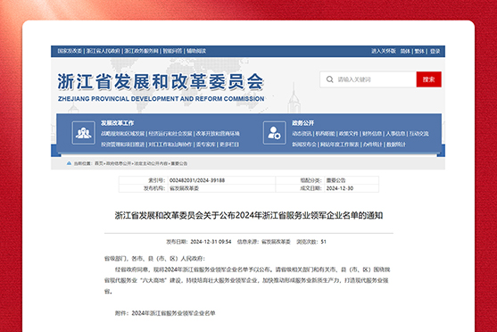 近日,浙江省發(fā)改委發(fā)布《2024年浙江省服務(wù)業(yè)領(lǐng)軍企業(yè)名單》……
